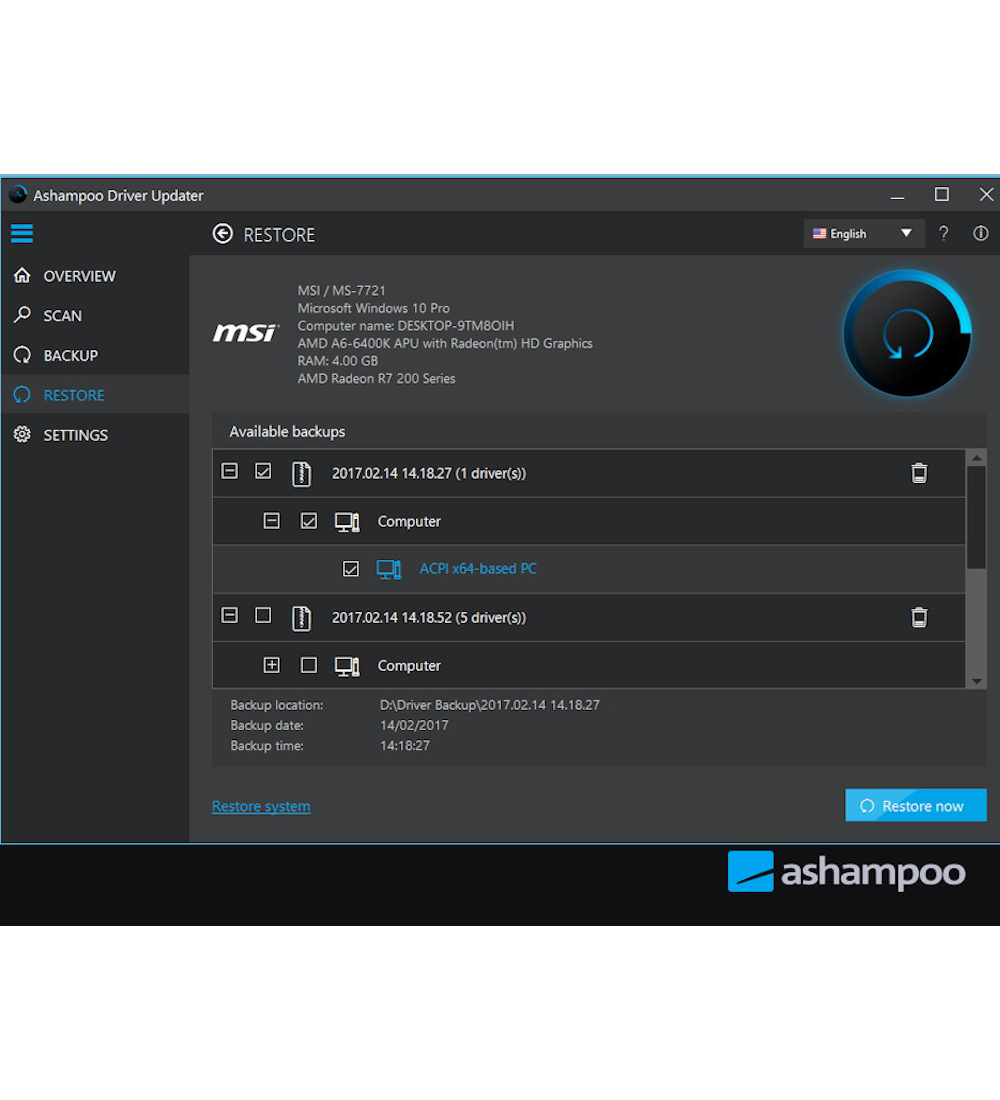 Non prenderti alcun rischio con Ashampoo Driver Updater. La sua funzionalità di backup integrato ti permette, se necessario, di salvare e ripristinare ogni driver. Mantieni solo quello che ti fa comodo davvero!