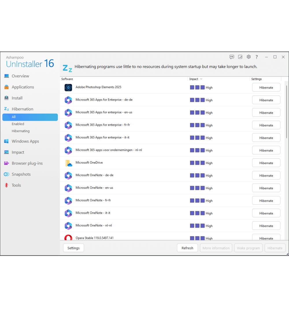 Con Ashampoo UnInstaller 16, puoi installare, testare e rimuovere programmi senza lasciare traccia, dandoti il pieno controllo su ciò che rimane sul tuo PC! Il software monitora attentamente ogni installazione e un'installazione registrata è il metodo ideale per una disinstallazione completa e pulita. Se non sono disponibili registri, ad esempio con programmi più vecchi, l'analisi forense può comunque rilevare e registrare tutte le modifiche rilevanti a posteriori. Anche i programmi senza registri di installazione vengono rimossi con cura utilizzando il processo di disinstallazione in cinque fasi con pulizia approfondita! Puoi anche rimuovere componenti aggiuntivi e barre degli strumenti indesiderati con un solo clic, mentre la funzione di snapshot mostra chiaramente ogni modifica apportata al sistema.